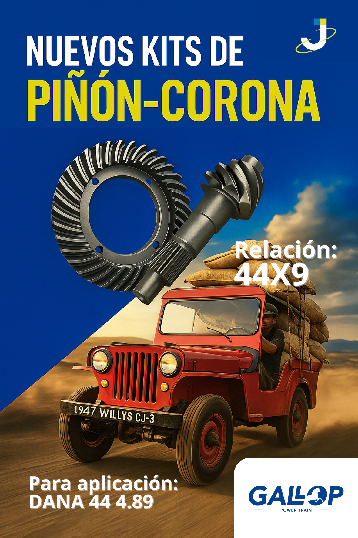 Gallop es la marca exclusiva de Jota Repuestos, creada para atender las necesidades de nuestros clientes en la categoría de tren motriz. Representa nuestro compromiso con la calidad, confiabilidad y precio competitivo, ofreciendo una alternativa de alto rendimiento para el mercado. Gallop es el resultado de nuestra experiencia, trayectoria y especialización en partes de tren motriz, garantizando productos diseñados para maximizar el desempeño y la durabilidad de los vehículos.